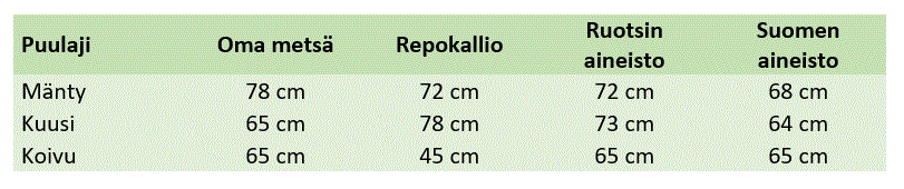 Toisaalta minulla on mittaustietoja tuhansista Suomen ja Ruotsin valtakunnallisten metsäarviointien koealoista. Suomen aineistossa suurin puu on läpimitaltaan 68 cm ja Ruotsin aineistossa 73 cm.