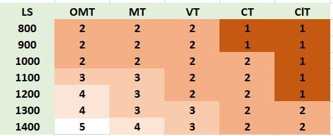 Alla olevassa taulukossa on nollarajan sijainti lämpösumman avulla ilmaistuna erilaisille kasvupaikoille ja eri korkokannoille, kun kuivahkoilla puolukkatyypin kankailla (VT) ja sitä karummilla kasvupaikoilla viljelymenetelmä on männyn kylvö ja parhailla kasvupaikoilla kuusen istutus. Laskelmassa on oletettu, että istutuskuusikoissa on kaksi taimikonhoitokertaa ja kylvömännikössä yksi.